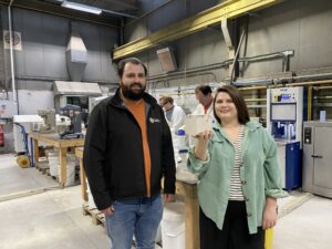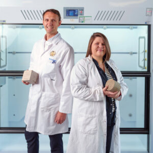 Material Evolution founders Sam Clark and Dr. Liz Gilligan in the lab